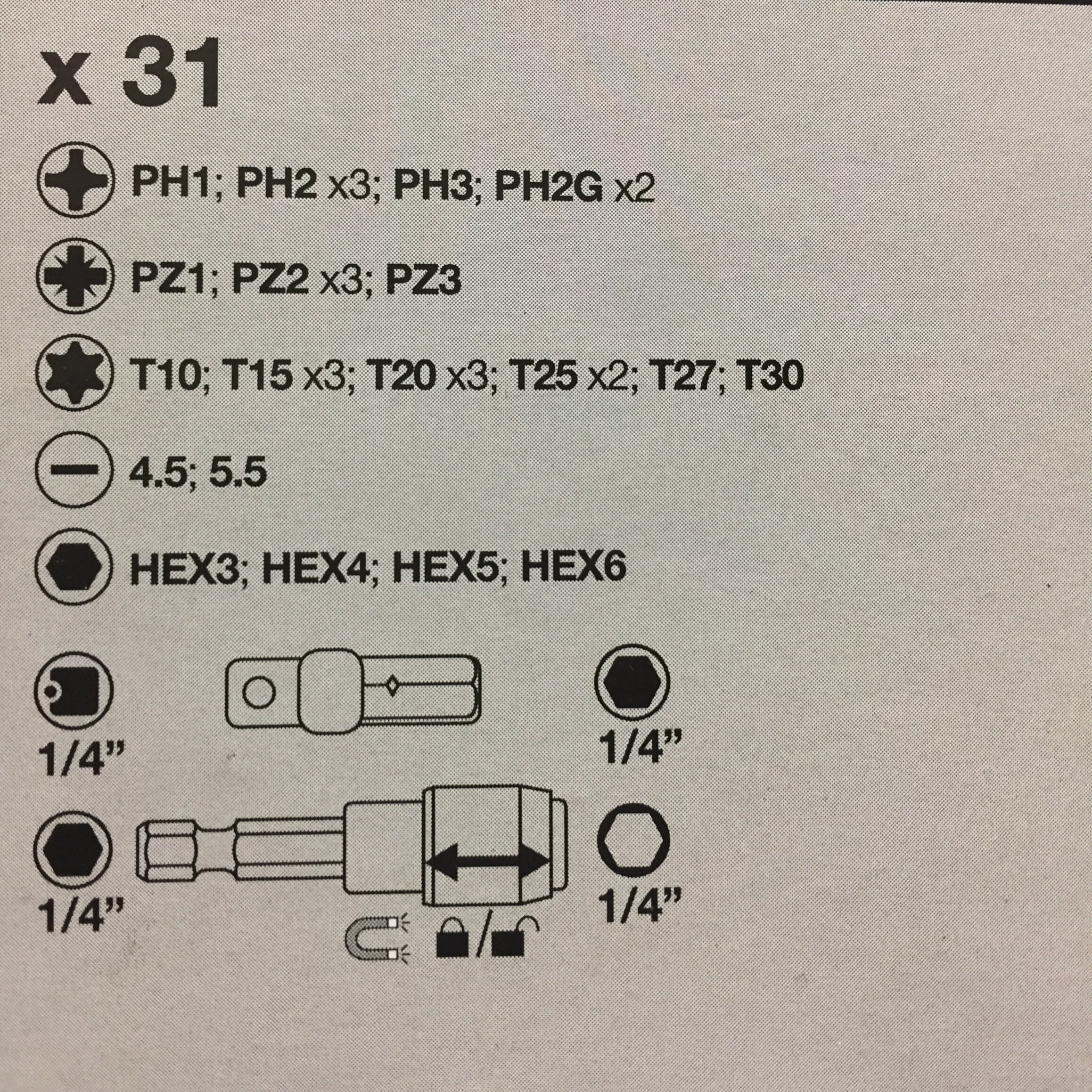 Serie 31 bits per avvitatore con porta inserti magnetico
